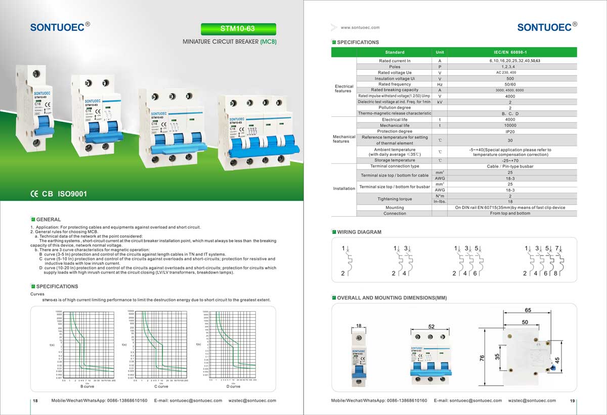 SONTUOEC یکی از تامین کنندگان/تولیدکنندگان چینی متخصص در تولید انواع لوازم برقی کوچک سری STM10-63 مینیاتوری دارای ویژگی های ساختار پیشرفته، عملکرد قابل اعتماد، ظرفیت شکست بالا، ظاهر زیبا و پوسته و قطعات آن از مواد با مقاومت در برابر ضربه، ویژگی مقاوم در برابر شعله قوی است. این مناسب برای سیستم تغذیه با فرکانس 50 یا 60، Ue 400 ولت و پایین تر، Ui 63A و پایین تر است. مطابق با استانداردهای IEC60898.1 و GB10963.1 است.